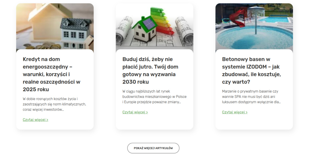 Sprawdź cenę budowy domu energooszczędnego lub pasywnego w technologii IZODOM i porównaj do z technologią tradycyjną. Zobacz ile możesz oszczędzić na przyszłych rachunkach. Skorzystaj z naszego darmowego kalkulatora.